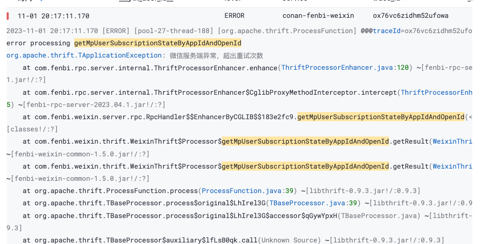 https://developers.weixin.qq.com/doc/offiaccount/User_Management/Get_users_basic_information_UnionID.htmlhttps://developers.weixin.qq.com/doc/offiaccount/User_Management/Getting_a_User_List.html,getMpUserSubscriptionStateByAppIdAndOpenId11月1号19:40-20:17出现异常,
