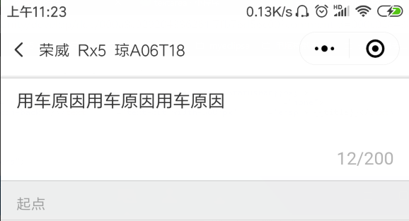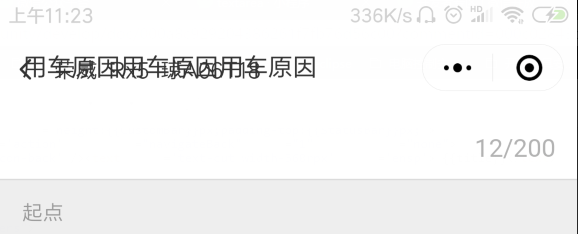 <customstyle="height:{{CustomBar}}px;z-index:2000px;"><barclass="fixed"style="height:{{CustomBar}}px;padding-top:{{StatusBar}}px;"><navigatorclass='action'open-type="navigateBack"delta="1"hover-class="none"><iconclass='icon-back'/><textclass='text-cut width-360rpx'space='ensp'> {{title}}</text></navigator></bar></custom><!--输入栏 start--><viewclass="containers"><!--form start--><formbindsubmit="formSubmit"><viewclass="weui-cells weui-cells_after-title form-margin-top"><viewclass="weui-cell"><viewclass="weui-cell__bd"><textareaname="reason"value='{{reason}}'maxlength="200"class="weui-textarea"placeholder="请输入用车原因"style="height: 3.3em;"bindinput="bindReasonInput"/><viewclass="weui-textarea-counter">{{reasonIptCount}}/200</view></view></view></view><viewclass="weui-cells__title">起点</view>默认页面