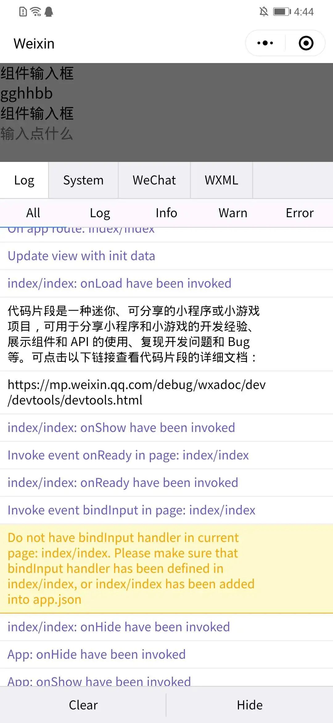 好了,废话不多说了,进入主题,以上问题经测试是在华为p30使用华为自带输入法,组件内input输入框输入英文字母时,并没有选择提示内容,然后就失去焦点,这种情况下,输入框内显示有内容,,但是并没有触发组件内的bindInput事件,提示Do not have bindInput handler in current page: index/index. Please make sure that bindInput handler has been defined in index/index, or index/index has been added into app.json