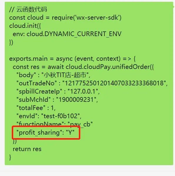 请问云开发支付怎么传入profit_sharing,这样好像不行