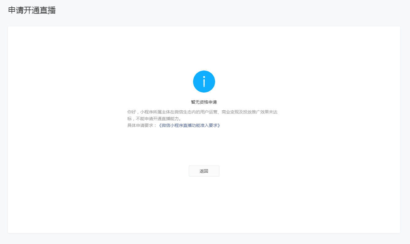 你好,核实到小程序暂不符合微信小程序直播功能准入要求,还需满足下列条件之一: