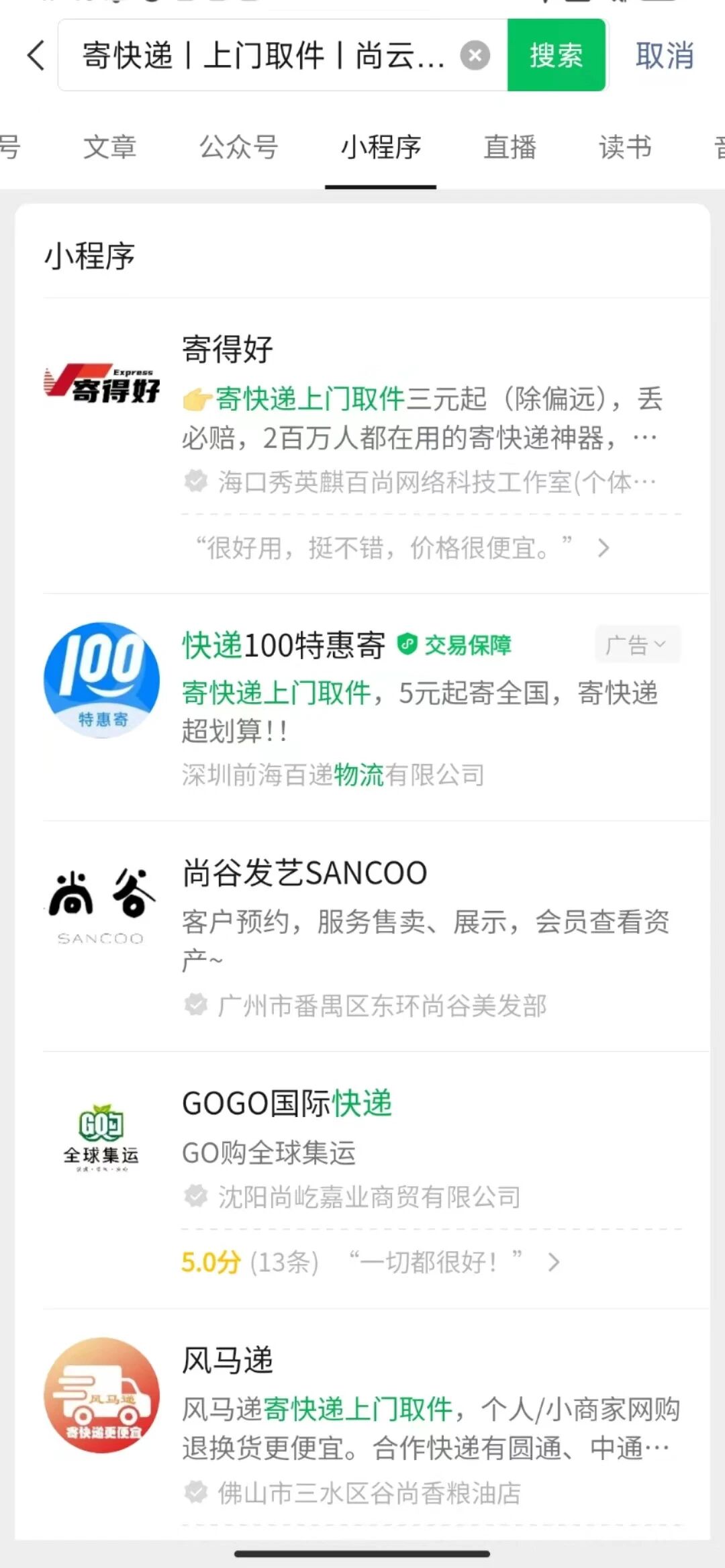 小程序名称:寄快递丨上门取件丨尚云卓信