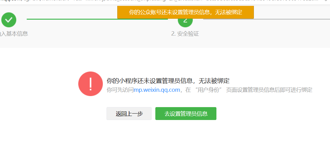 开放平台上绑定小程序,提示和这个问题。但是我们开放平台、公众号、小程序都是绑定了管理员的。这怎么解决呢