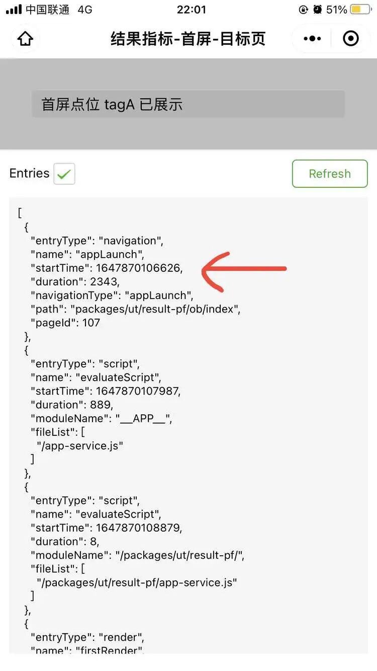 - 小程序启动后,通过 wx.getPerformance().getEntries() 方法查看 appLaunch 条目的 startTime,记为 B。