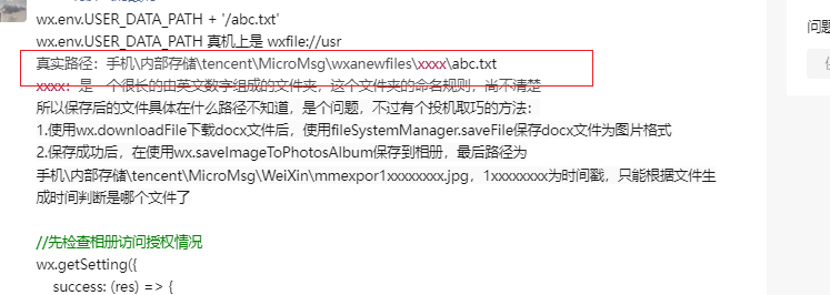 官方弄一个保存文件的API出来,结果没有任何官方描述说明这个文件的存放位置。关键是开发者提问了后,官方自己还引用的一个第三方开发者的回答,而且还是错误的,真恶心