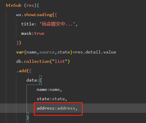 你在提交之前并未定义 address变量啊