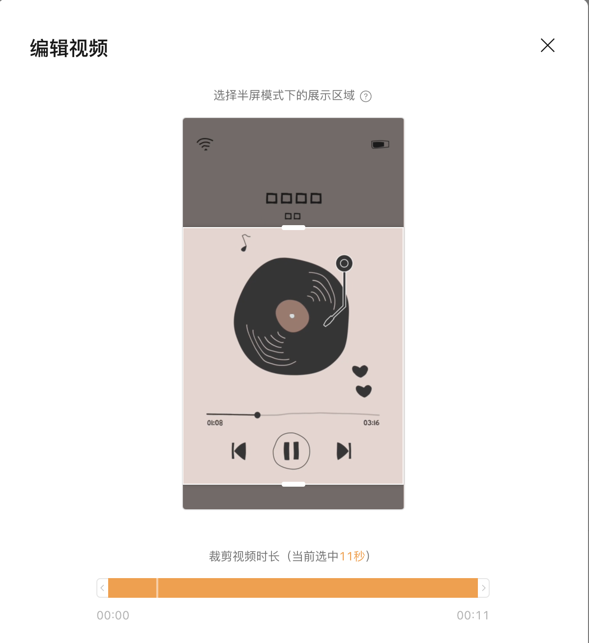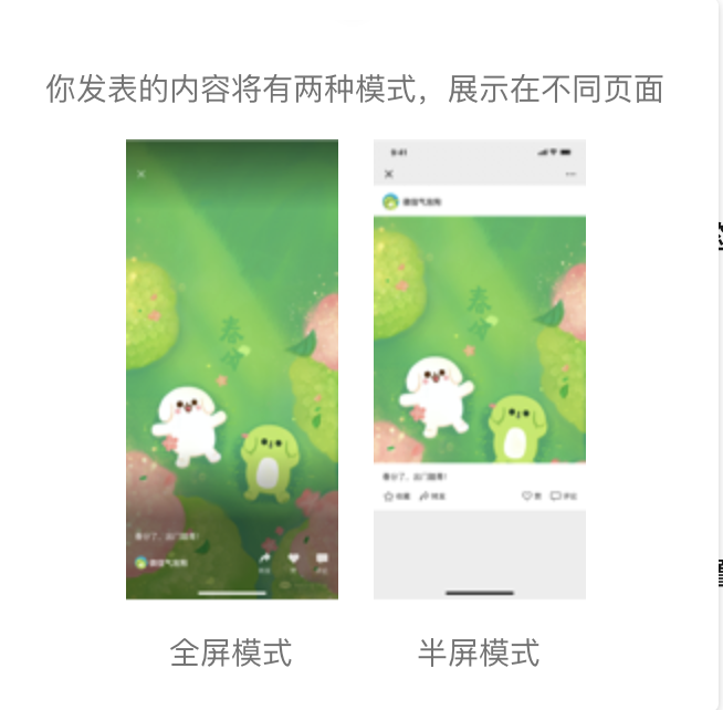 这里给出的提示是视频会有两种展示:一种是全屏模式 一种是半屏模式