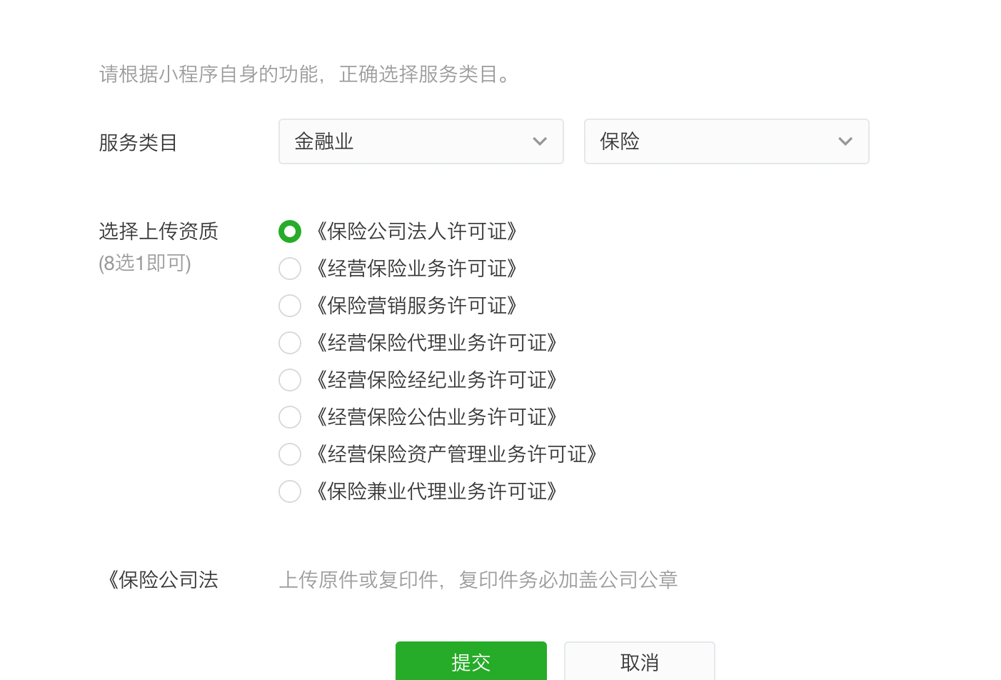 保险团队?你选择保险类目,开发个小程序不就可以上线嘛,资质如图