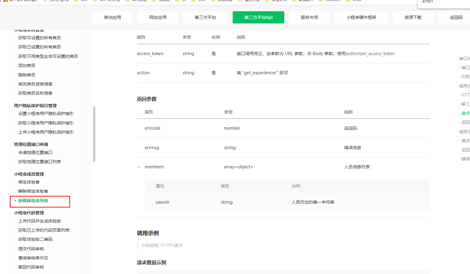 你好,请问下调用体验者列表接口,{"action":"get_experiencer"},获取到的反馈结果是:{"errcode":47001,"errmsg":"data format error rid: 64d5a35e-1877fada-5377fd81"} 。是什么原因?谢谢