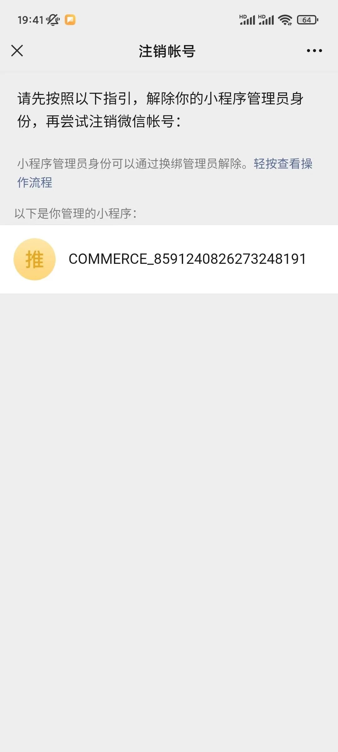 这个是小程序推客,注销可参考一下这篇帖子的回复:https://developers.weixin.qq.com/community/develop/doc/0000ca098e44502573ad3cbb156c00 。