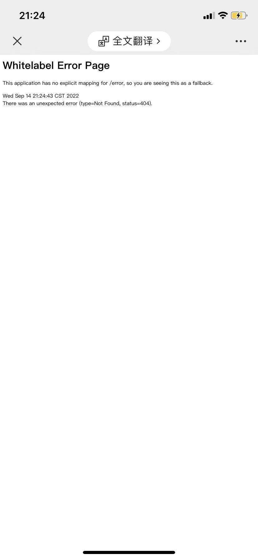 Whitelabel Error Page(也叫白页),就是SpringBoot中请求出现异常的说明页,这说明你的二维码配置有问题,找不到指定路径