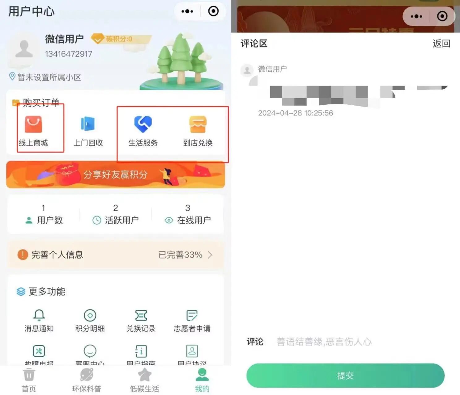 1.你的小程序服务功能【线上商城】【生活服务】【到店兑换】点击无响应,无法完整体验,请修复或在提审页面上传小程序完整录屏,再提交代码审核。