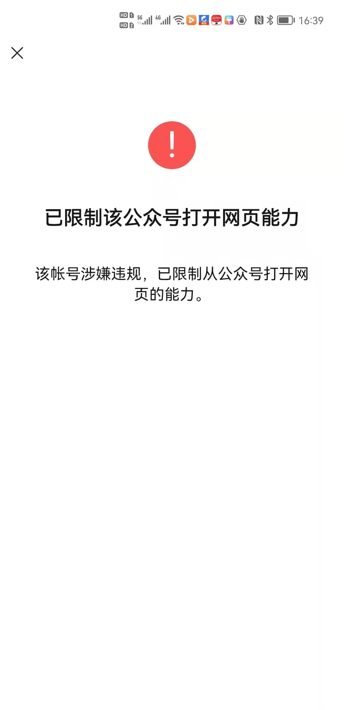 该账号涉嫌违规,已限制从公众号打开网页的能力。