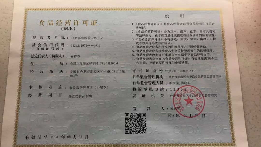 我主要提供的是早餐,包子,馒头,有食品许可证