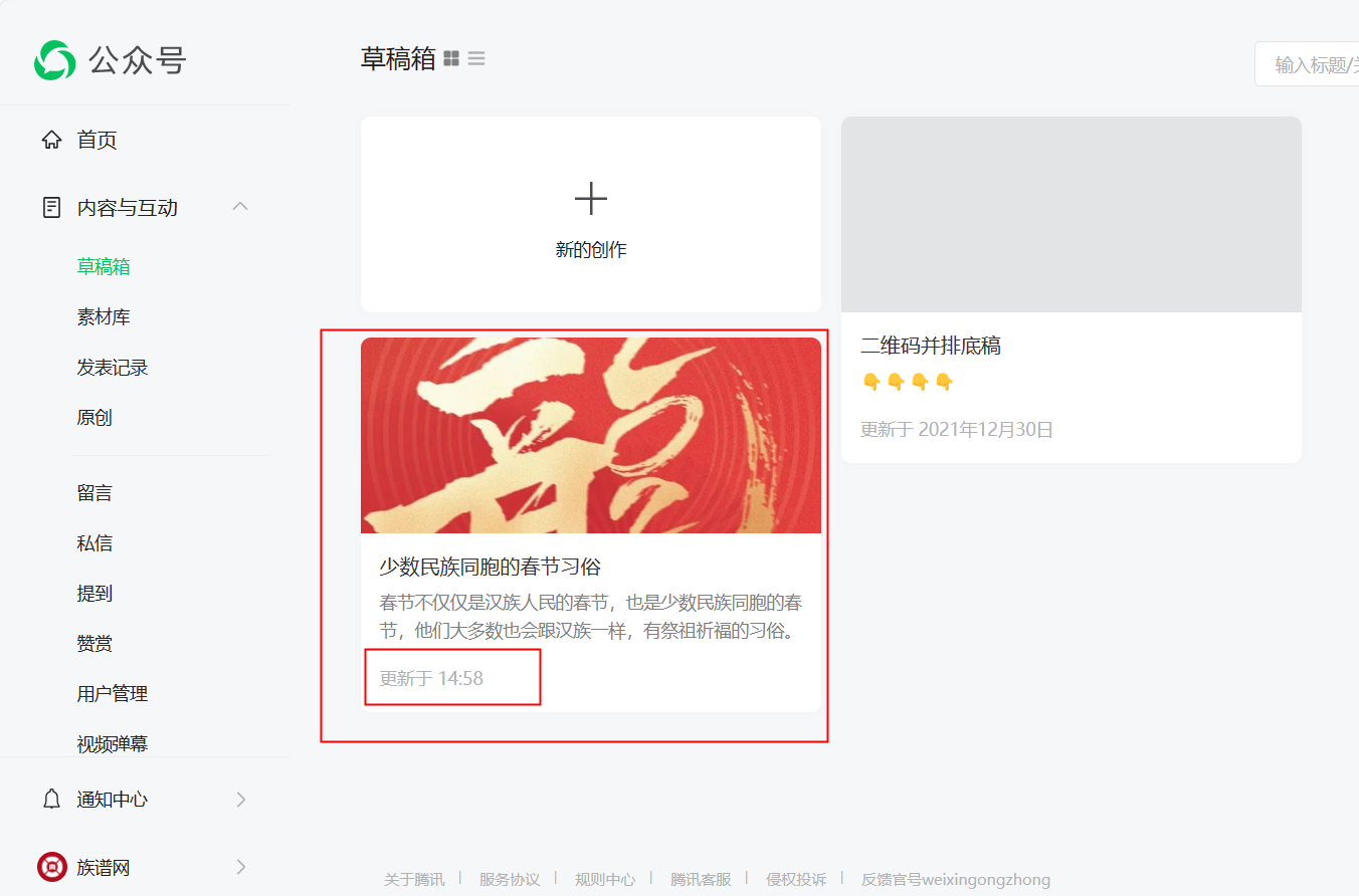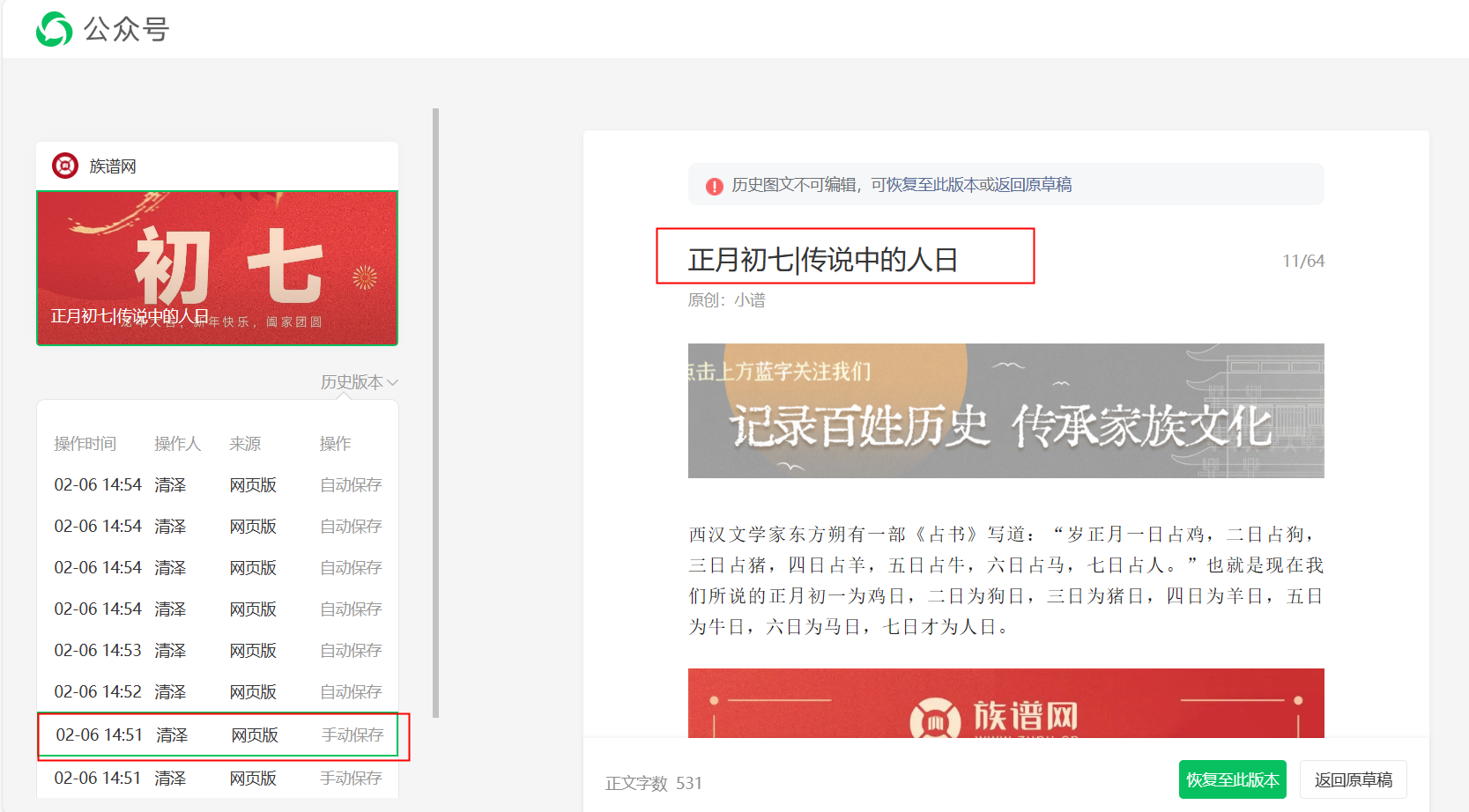 草稿箱只能保存1篇文章,多编辑就会把之前的覆盖,之前保存的草稿只能在历史版本中看到