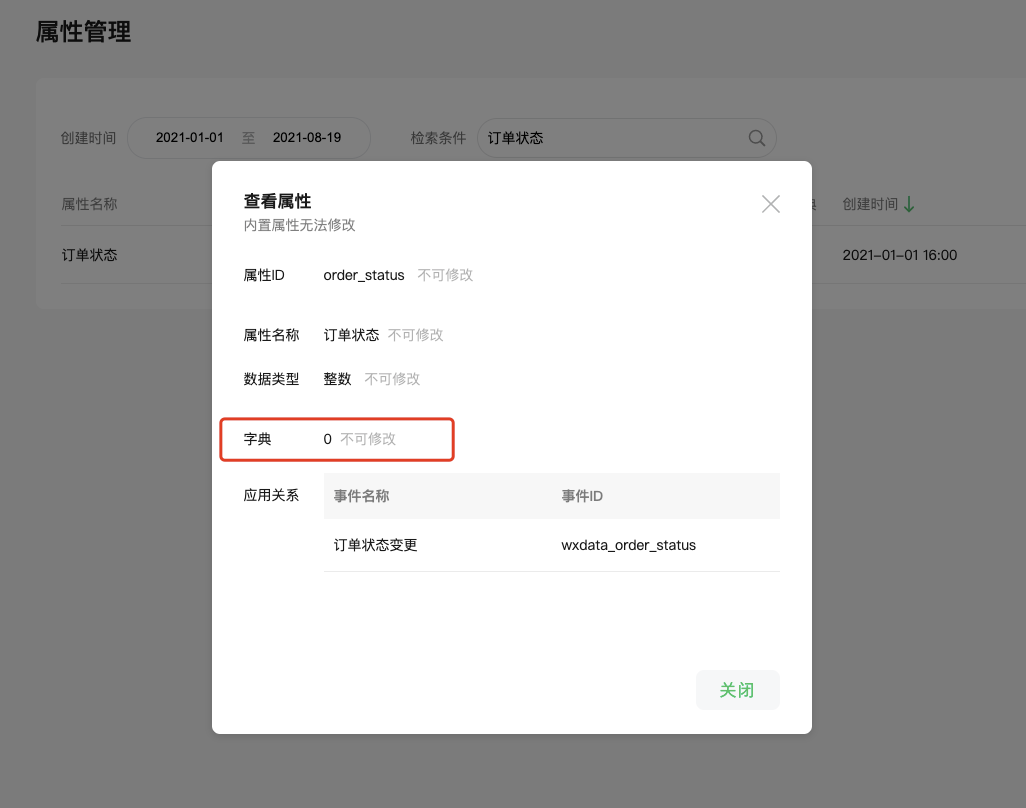 我发现自带的属性:订单状态,没办法关联到订单状态的字典,这个能帮我关联下么