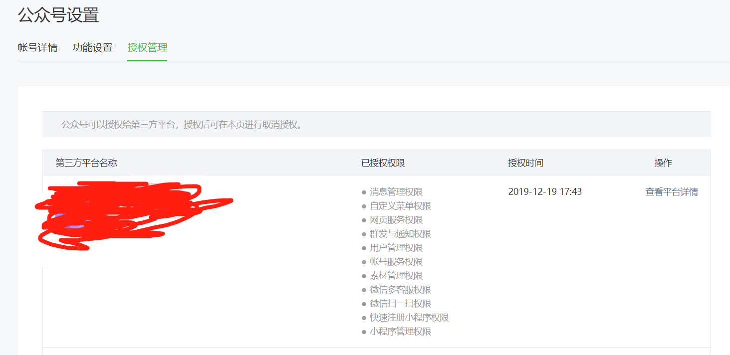 B公众号是授权的,在微信公众号的后台这里可以看到授权的第三方平台资源不可访问时,可改访问