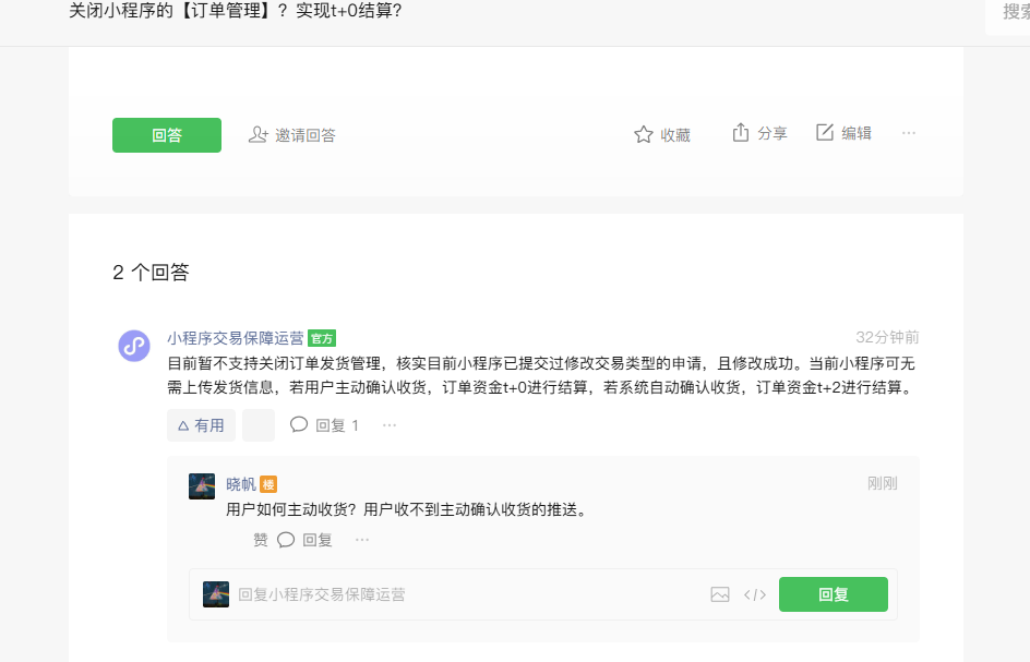 为什么我司两个小程序,一个是没有【订单管理】功能t+0结算,一个是有这个【订单管理】功能t+2结算,怎么关闭【订单管理】功能?为什么有些用户可以关闭,现在又说不能关闭?