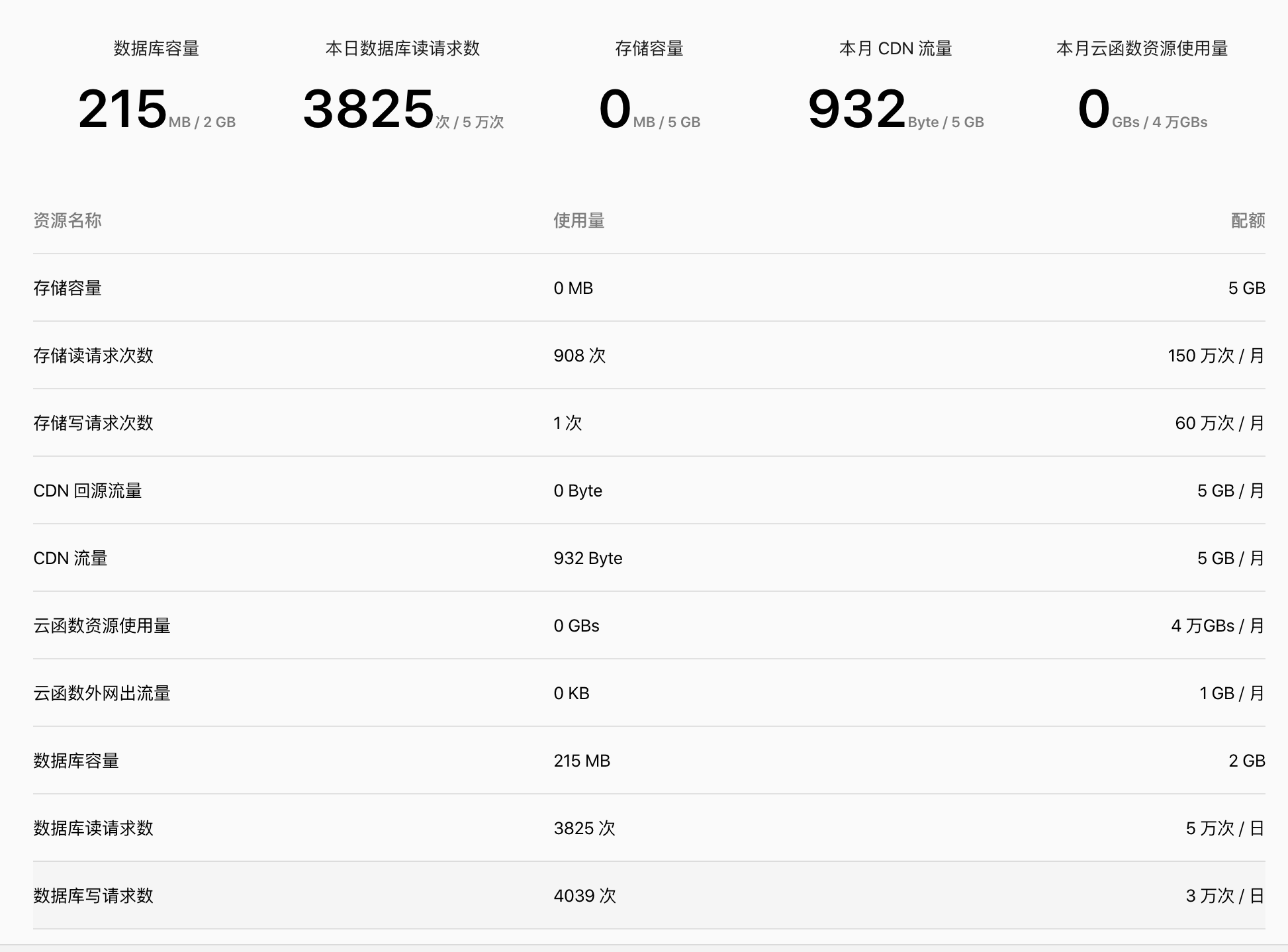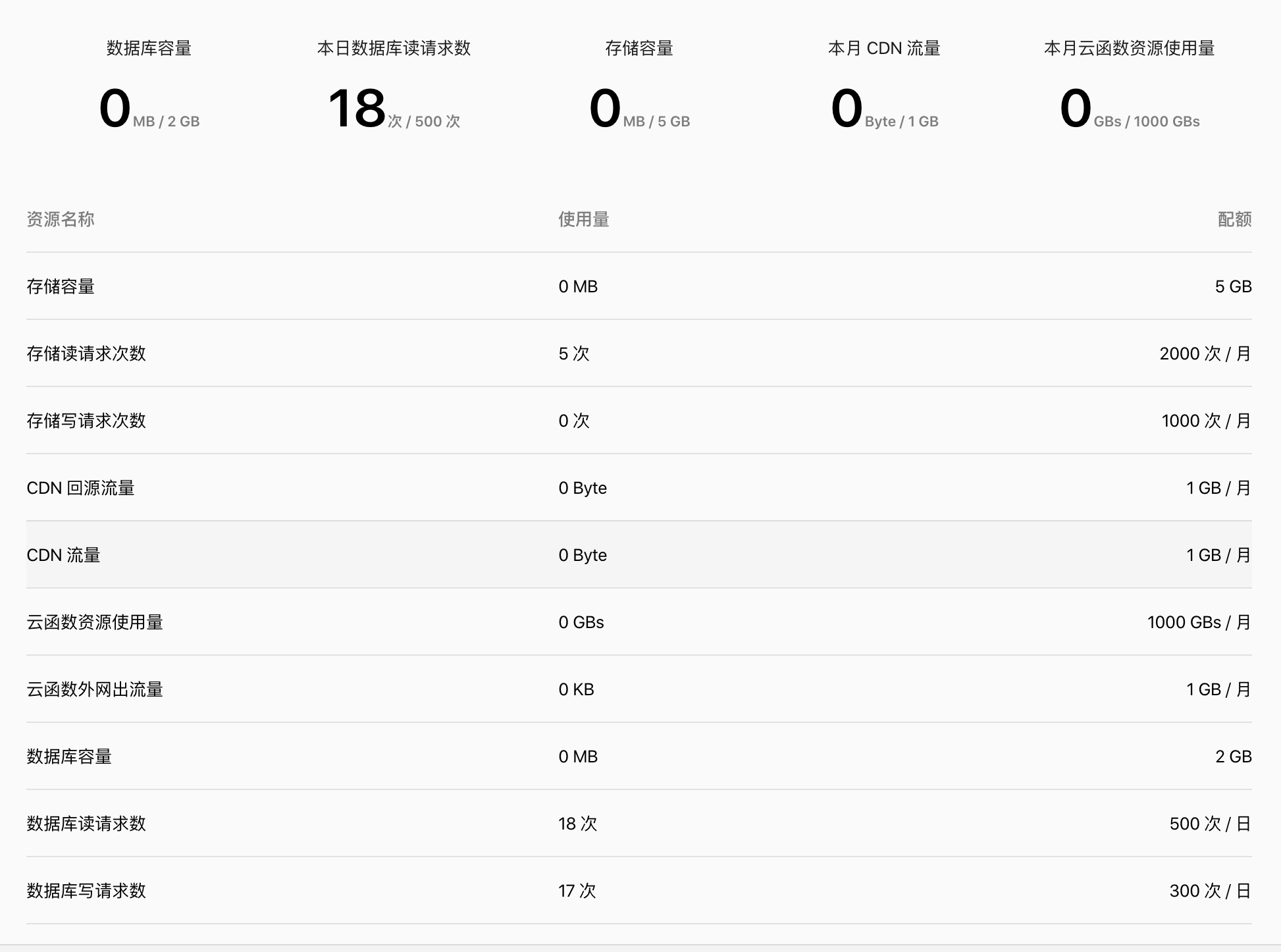 今天新开了一个小程序的云开发。发现一年多以前开的一个旧的读次数5万/日,新的500/日。现在开的免费版根本不够用 哈哈哈