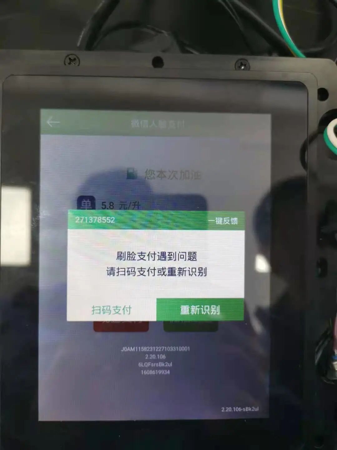 但将设备连接加油站的网线,刷脸后会让输入绑定的手机号,之后提示请扫码支付或重新识别,识别后又让输入手机号,依次反复。