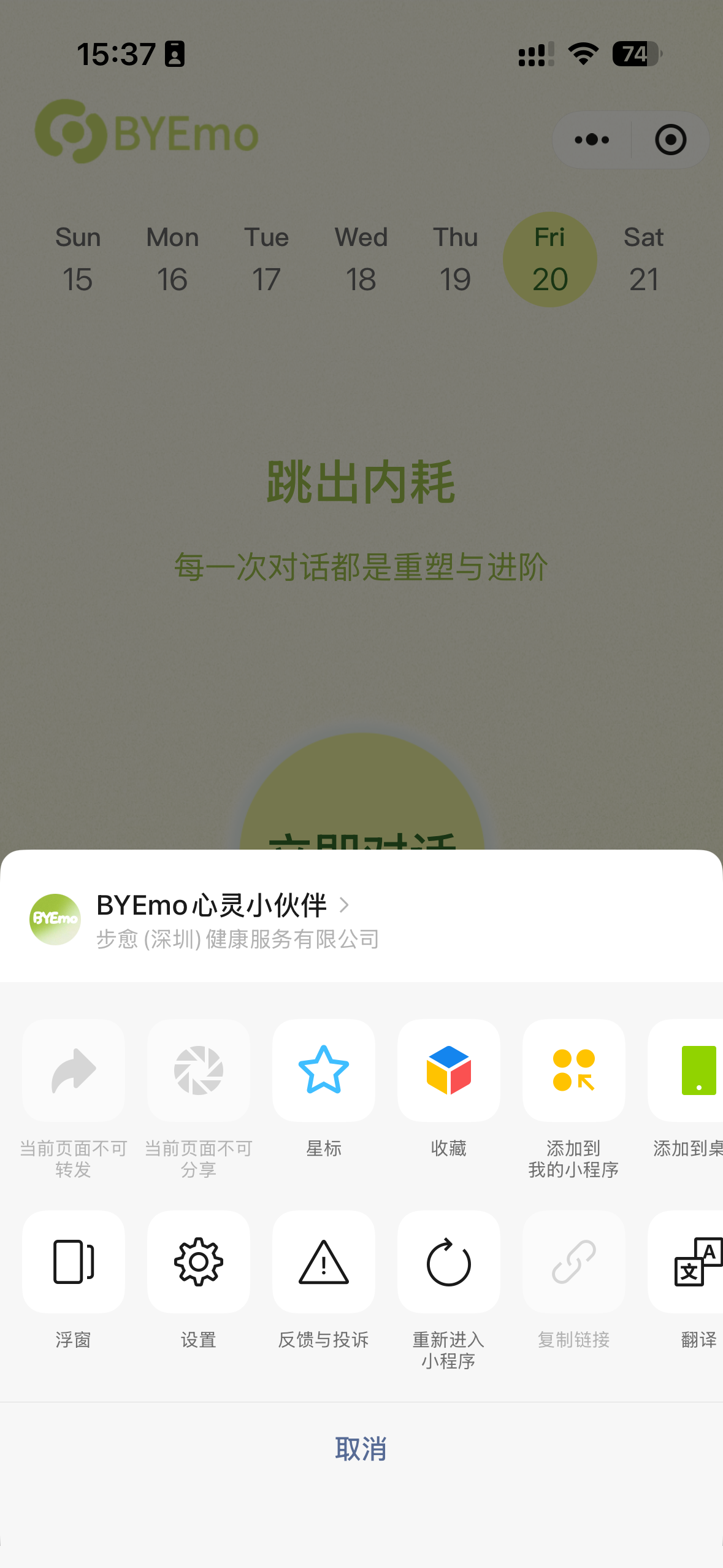 BYEmo心灵小伙伴小程序不能转发也不能复制链接