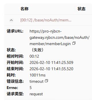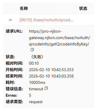 错误信息: fail:time out