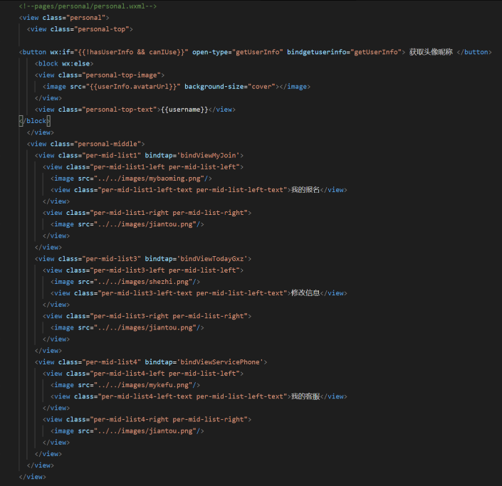 这个是个人中心wxml的代码: