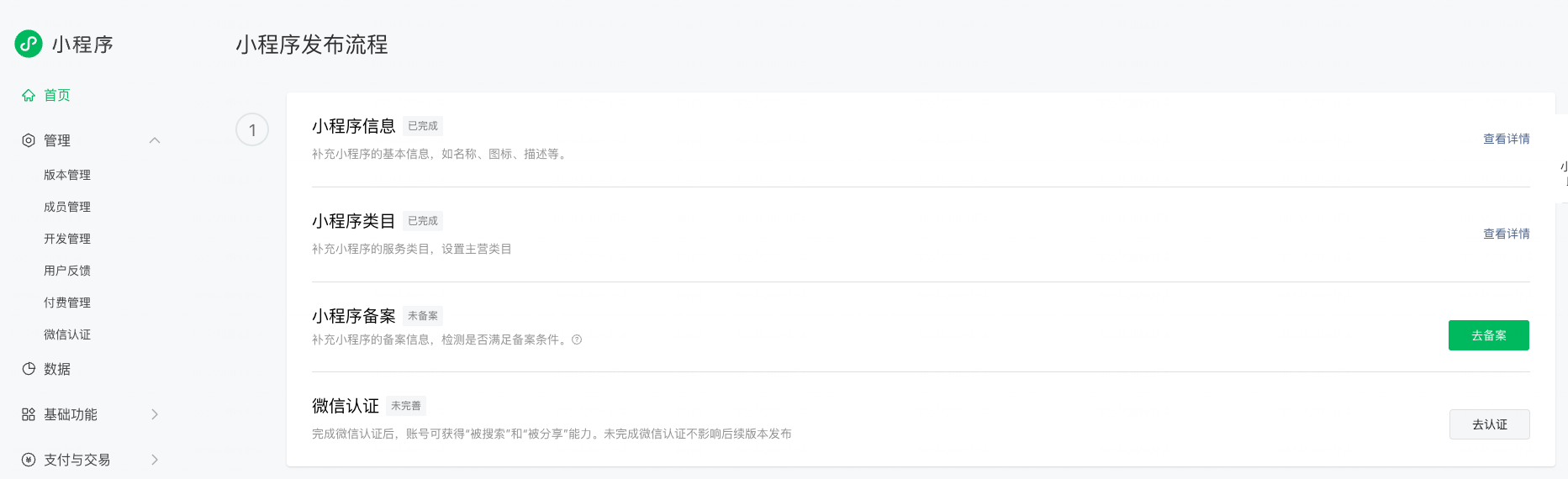 填完备案信息点击下一步提升如下