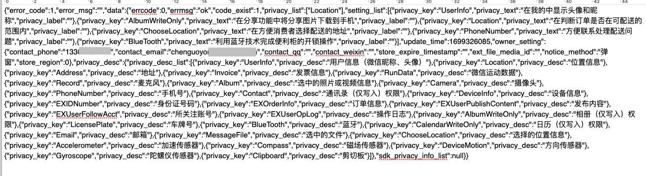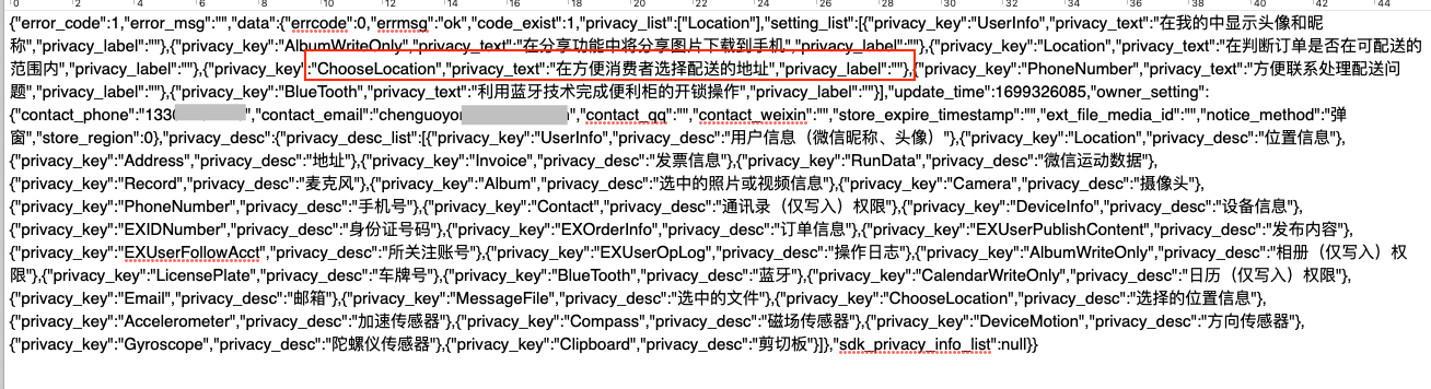 图1:通过官方getprivacysetting接口获取的隐私协议,明显是有ChooseLocation隐私说明的;