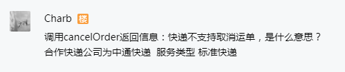 调用cancelOrder返回信息:快递不支持取消运单,是什么意思?