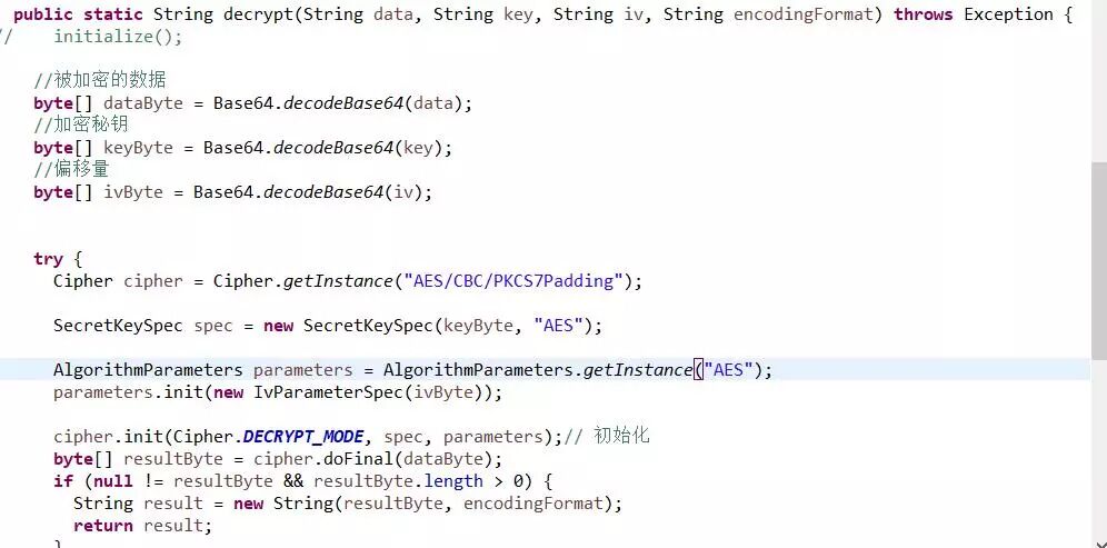 用的是java后台解密 单个用户用的时候解密成功 但多个用户同时使用抛出BadPaddingException异常 或者tomcat有修改时开发工具要清理缓存才能解密成功 以下是后台AES解密工具的部分代码 异常时这部分byte[] resultByte = cipher.doFinal(dataByte); 语句报错