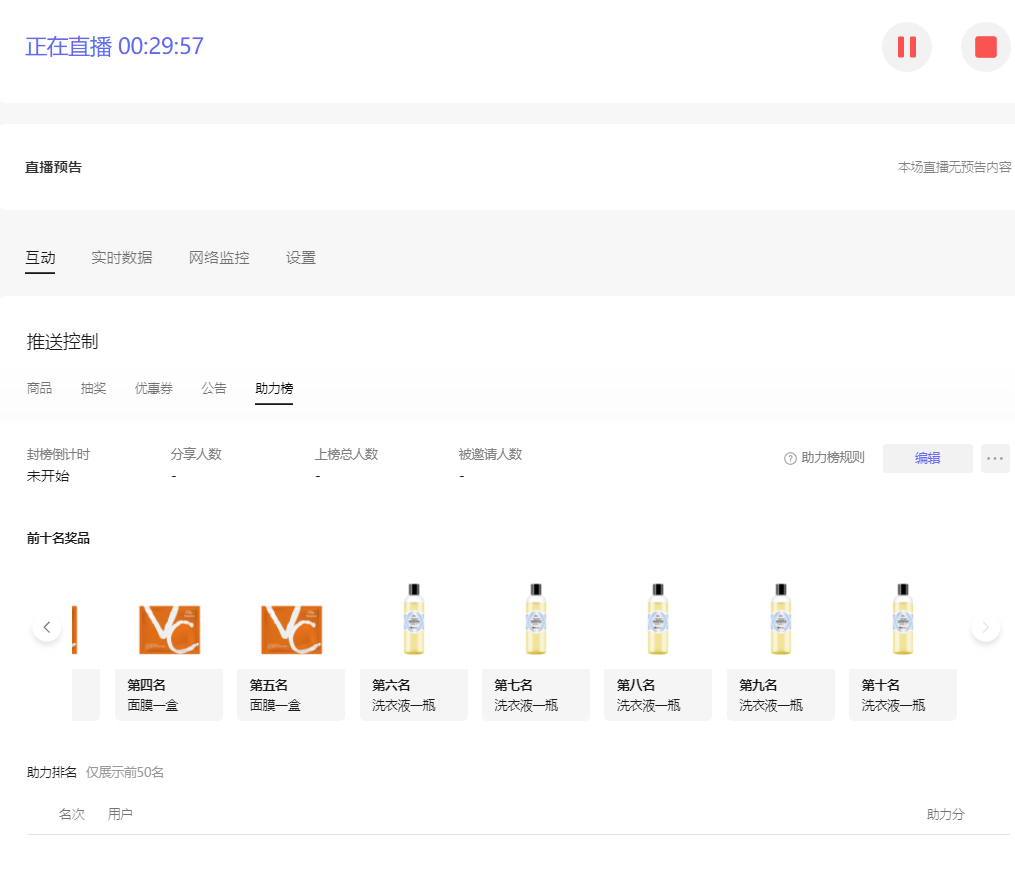 已经正在直播了。但是助力榜还是未开始,什么情况?