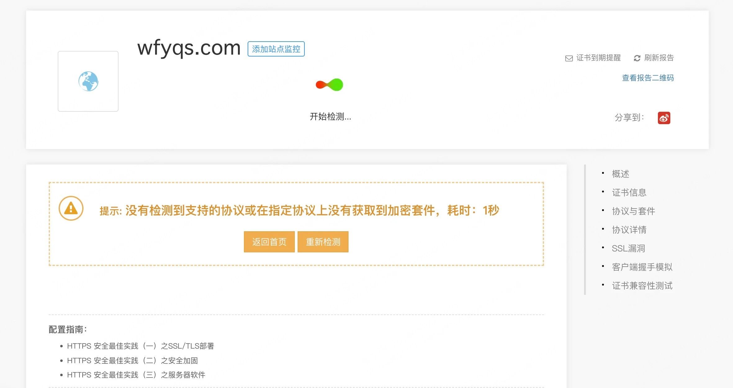通过在线工具:https://myssl.com/ssl.html,校验下你的域名SSL证书是否过期或者不完善。