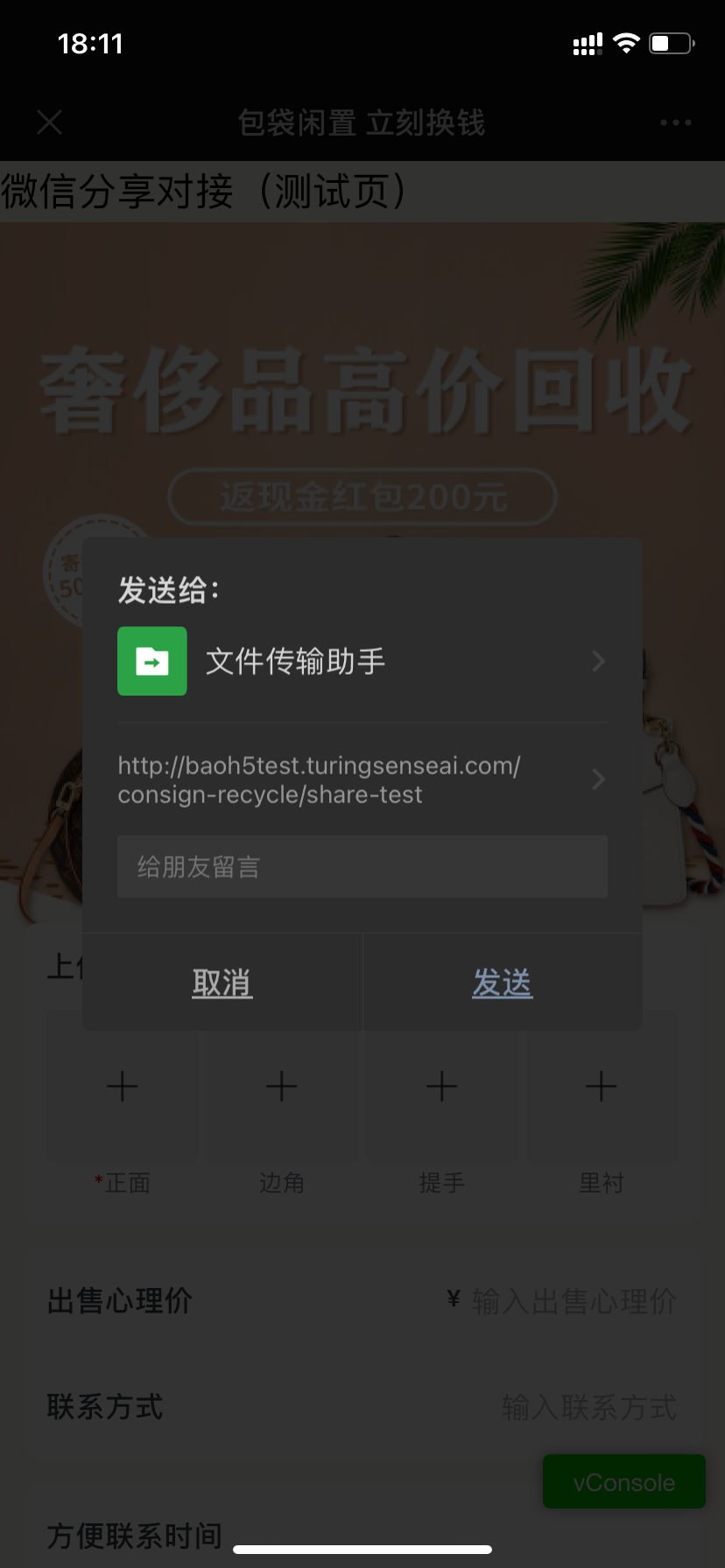 测试连接:http://baoh5test.turingsenseai.com/consign-recycle/share-test