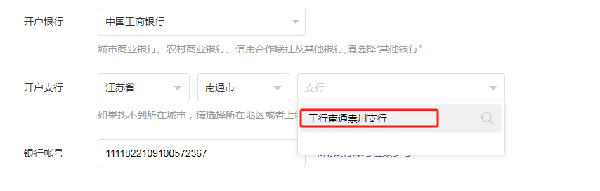 中国工商银行股份有限公司南通崇川支行,这个找不到吗?