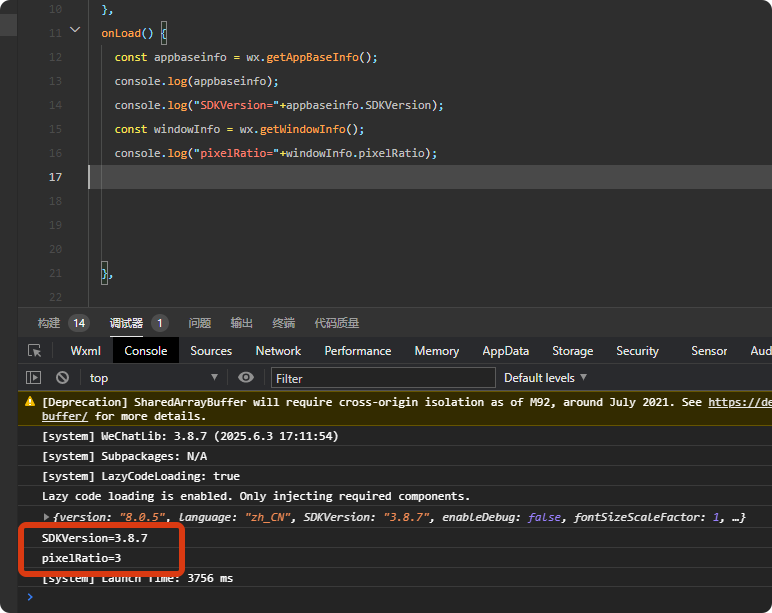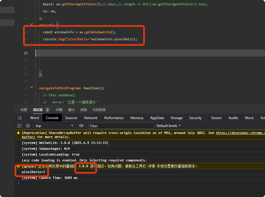 const windowInfo = wx.getWindowInfo() console.log(windowInfo.pixelRatio) 返回undefined