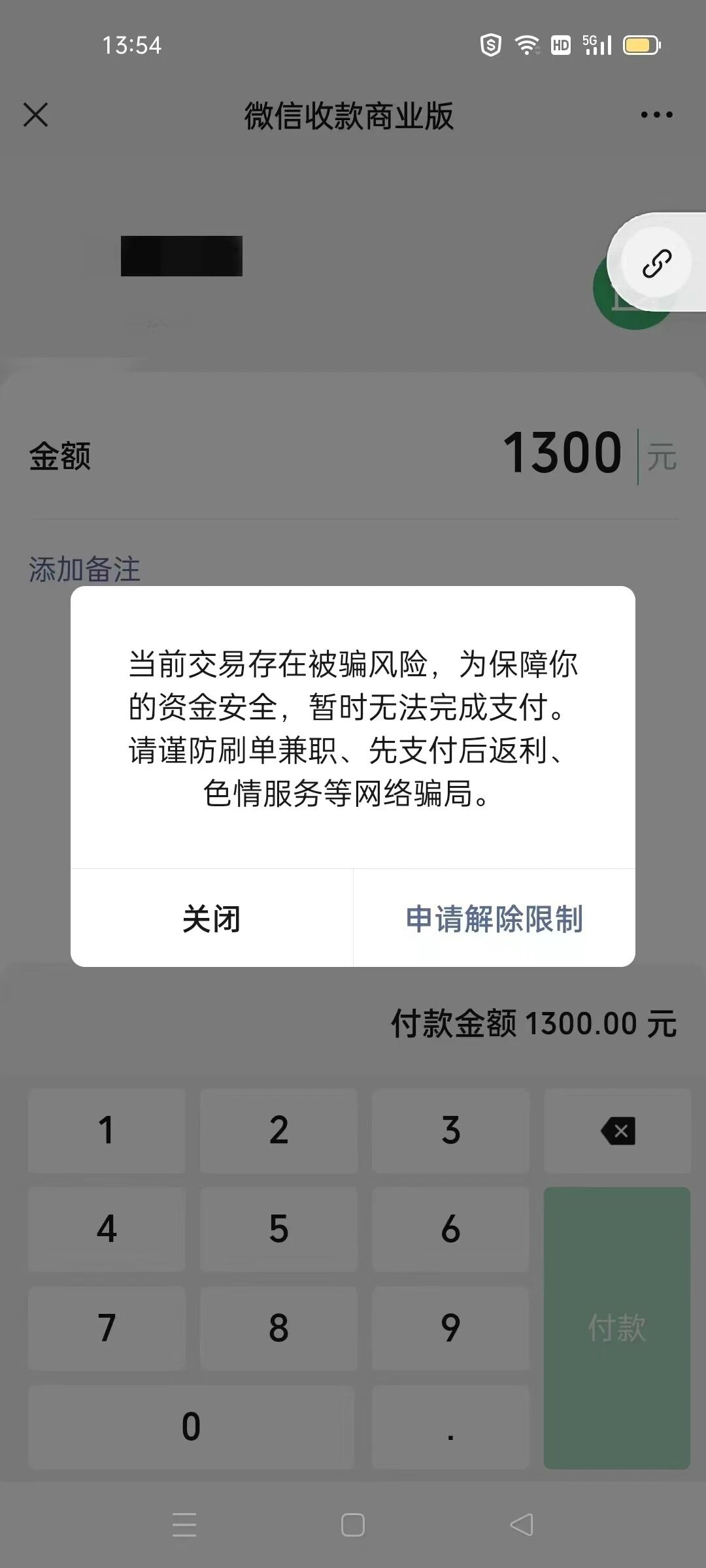 1、请引导用户点击【申请解除限制】,按照流程去操作解除后继续发起支付,谢谢