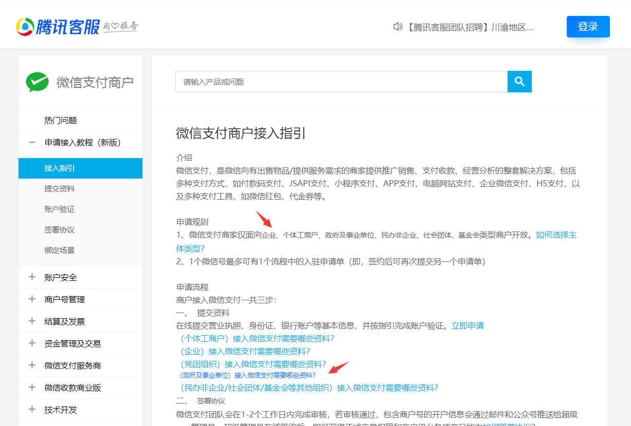 反馈位置:腾讯客服-微信支付商户接入指引页面
