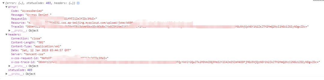 你好,我用小程序上传图片到cos指定目录,但是返回值里提示403,签名或者权限不正确,这到底咋回事。