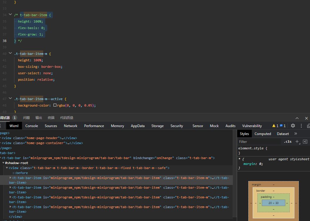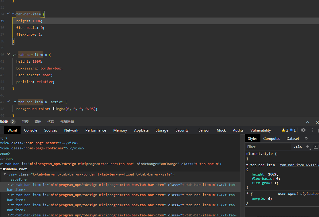 下图是指定t-tab-bar-item标记(tag)时截图: