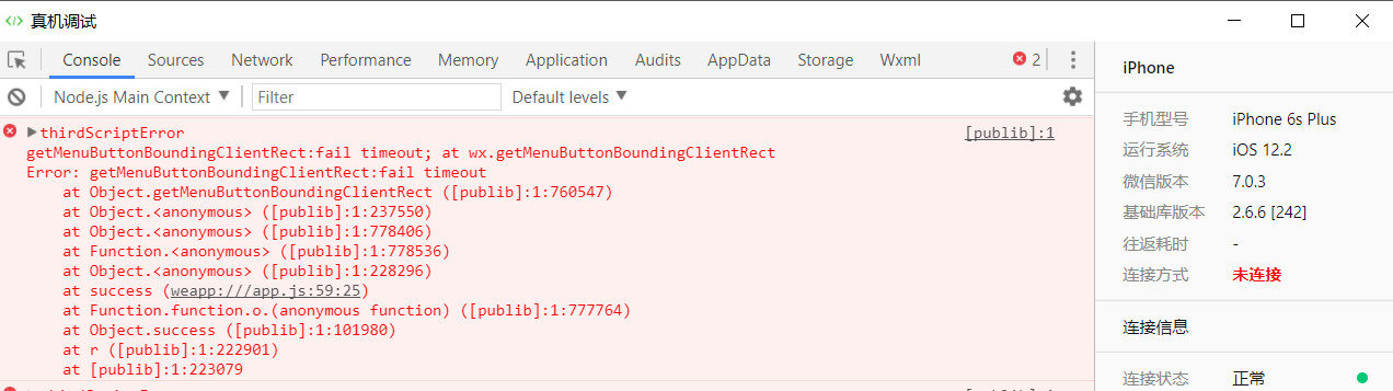 测试了我的两台设备,IOS真机调试直接导致微信闪退,安卓没有问题。