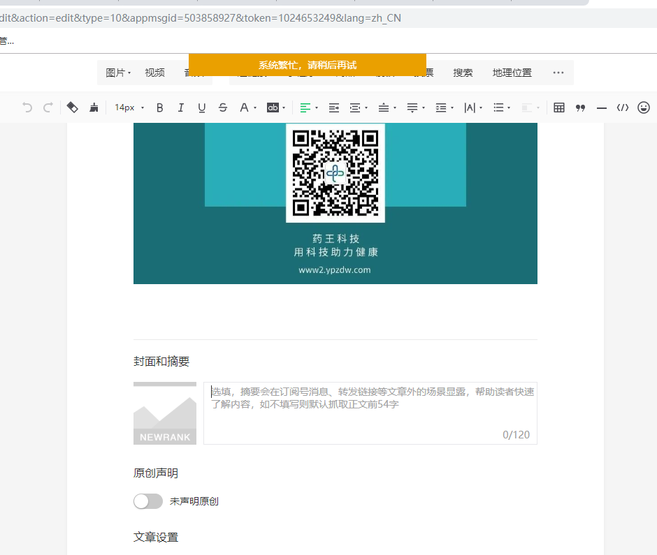 上传文章封面,一直提示系统繁忙,请稍后再试?
