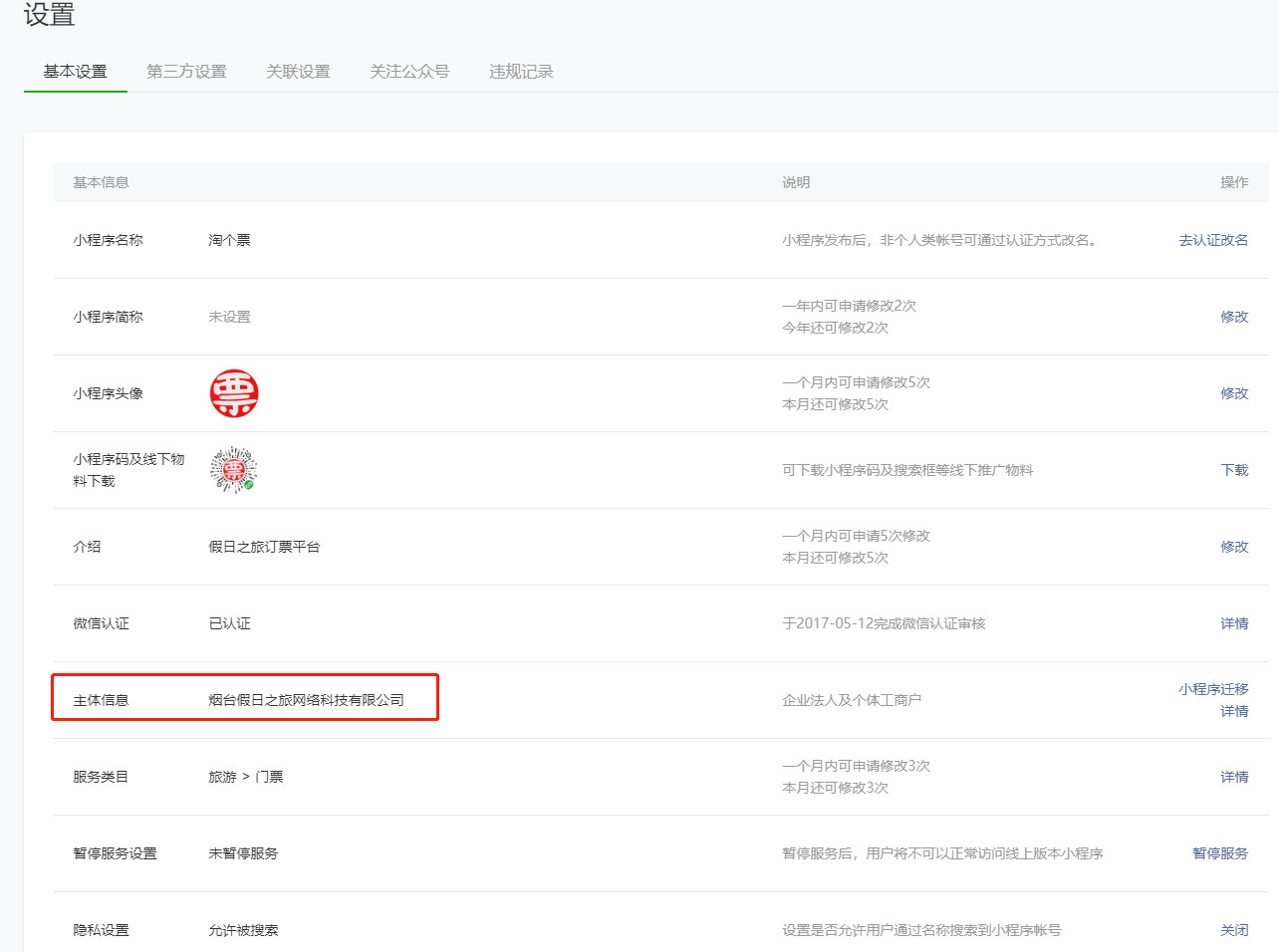 公司名称更改后:淘个票(烟台)网络科技有限公司