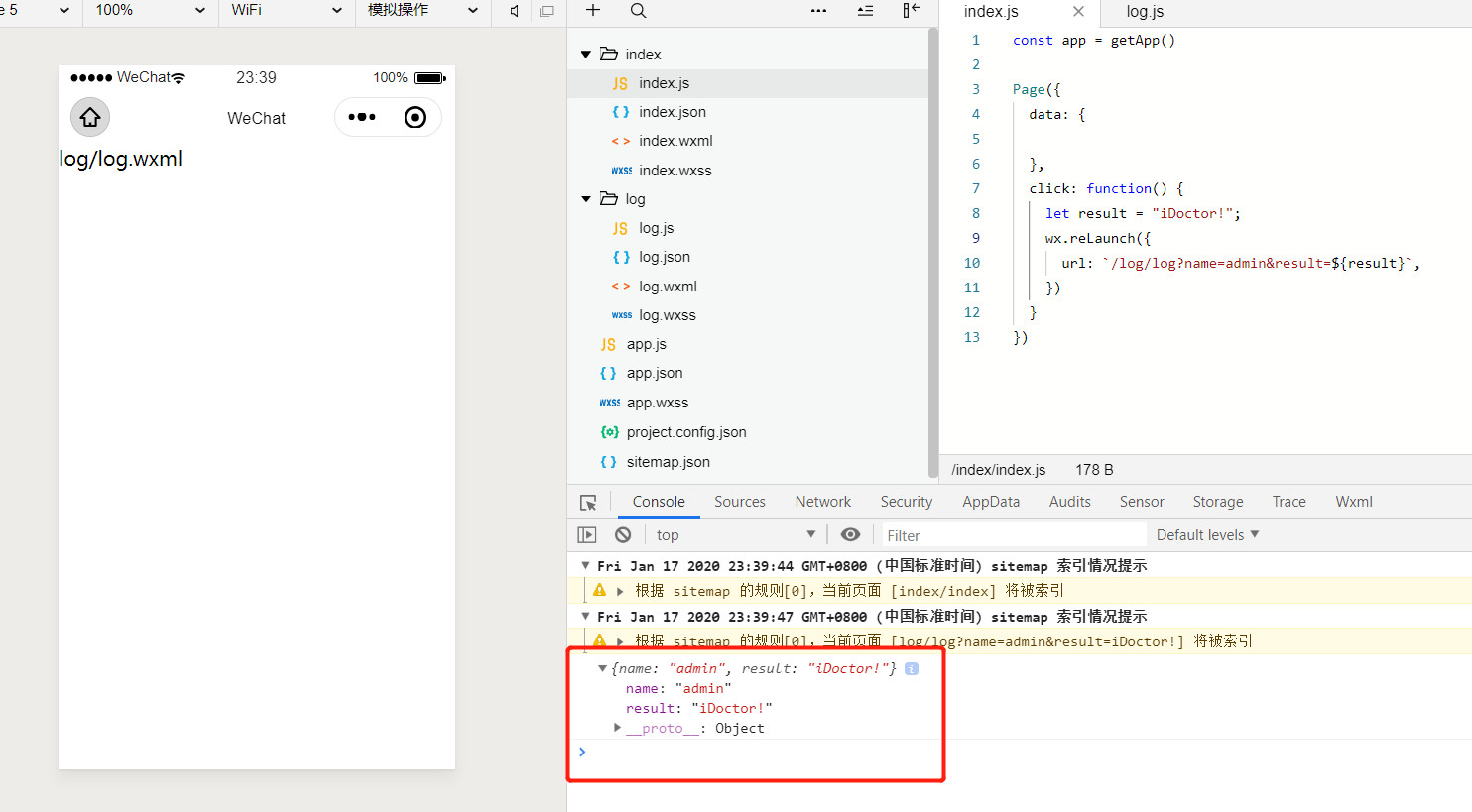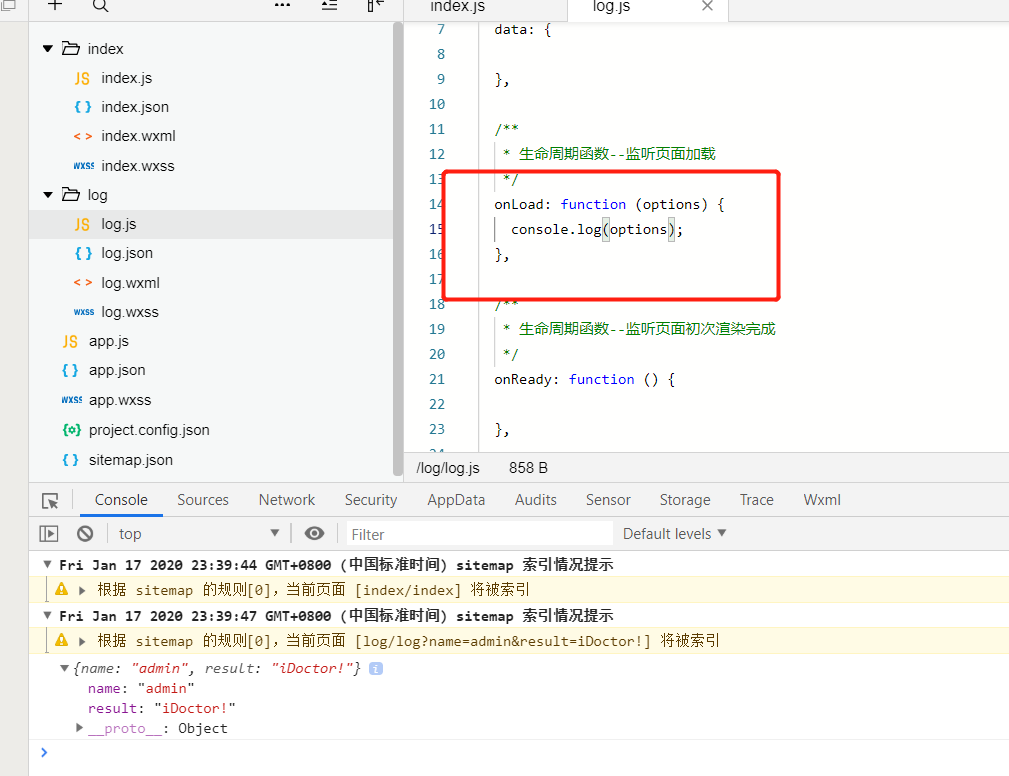 这是index.js获取到传过来参数的页面index.js的代码,并且有console.log打印