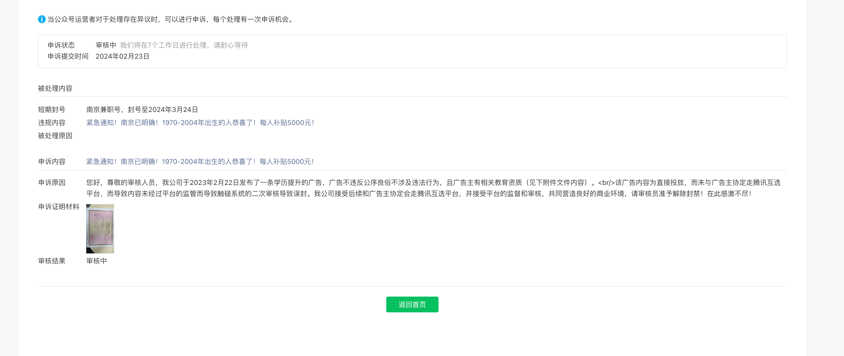 催促下人工审核,23号提交的审核,这都3月5号了,能不能处理解决一下?