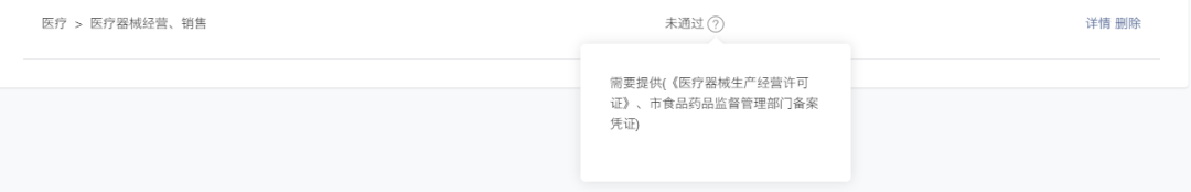 现在我们要重新申请该类目,但是苦于没有《医疗器械经营许可证》我们的类目申请一直审核不通过,进入了一个死循环