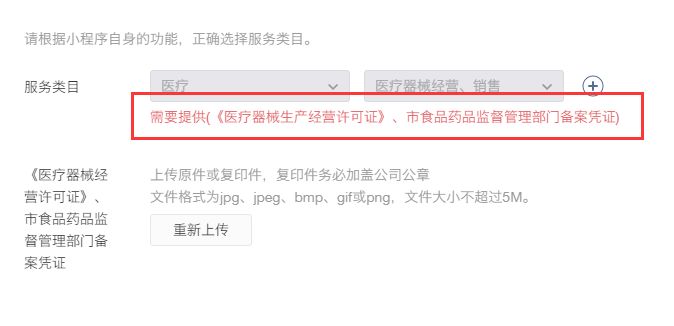 为此我们只能去申请小程序的医疗器械经营、销售类目 , 但是却需要《医疗器械经营许可证》及备案凭证