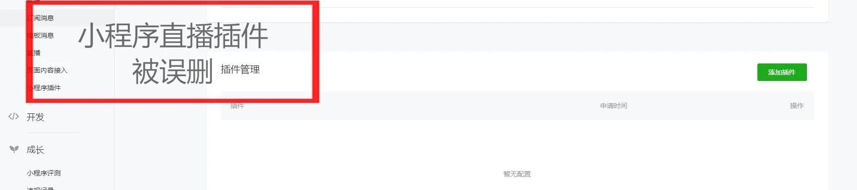 之前已经正常直播,11号被误删小程序直播插件,再次添加显示类目不可添加,已经运营的小程序,3天时间过去了,希望老师能够帮助解决,万分感谢。