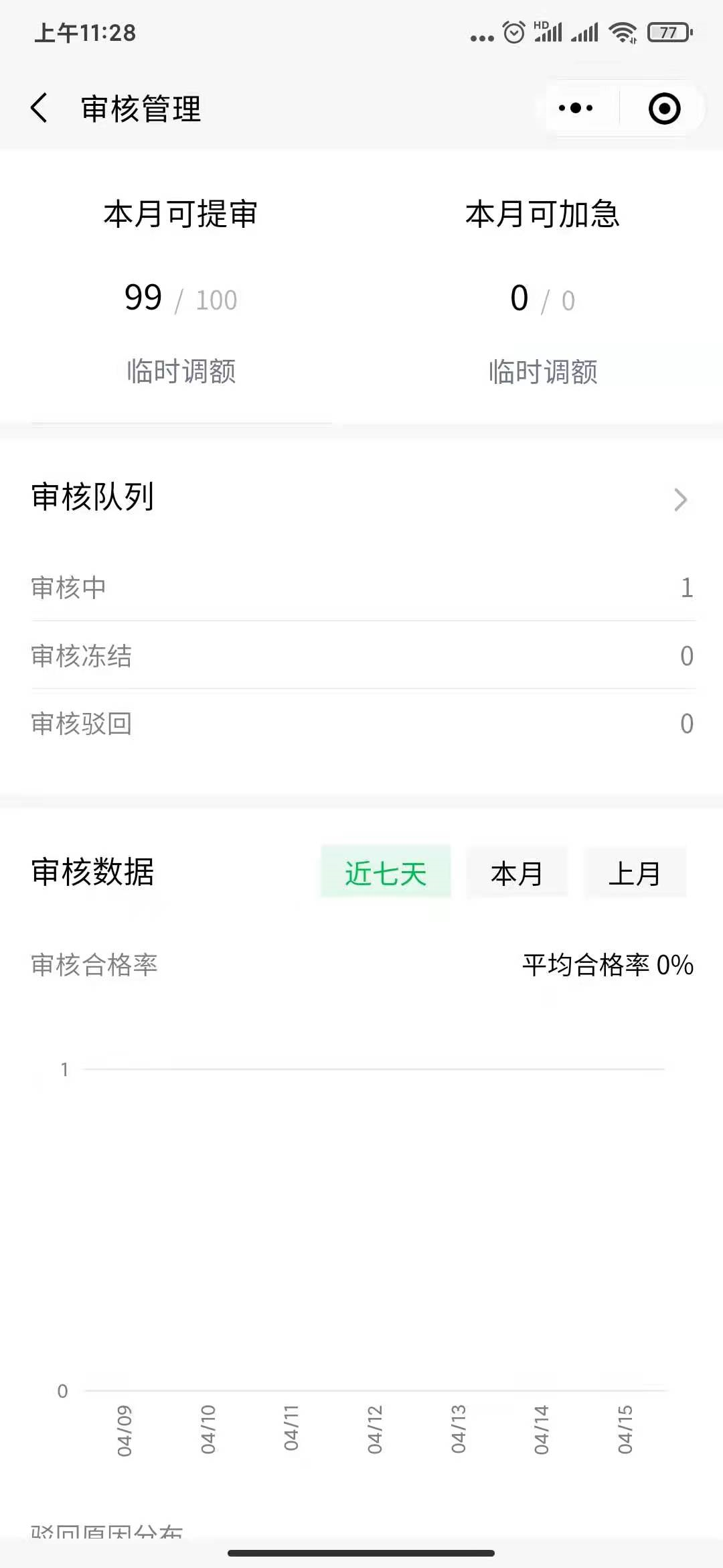 我是本月注册的第三方平台,4月6号全网发布成功。今天有个小程序代码发布申请了加急审核,结果发现配额为零?