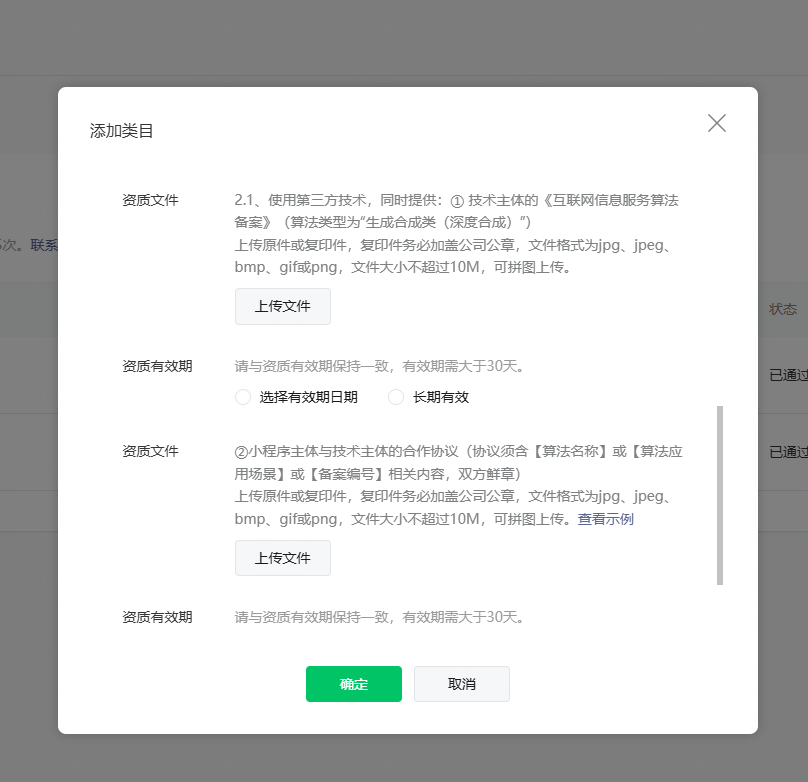 我也碰到了这个问题,需要和微信对方开放平台的合作协议和《互联网信息服务算法备案》(算法类型为“生成合成类(深度合成)”)
